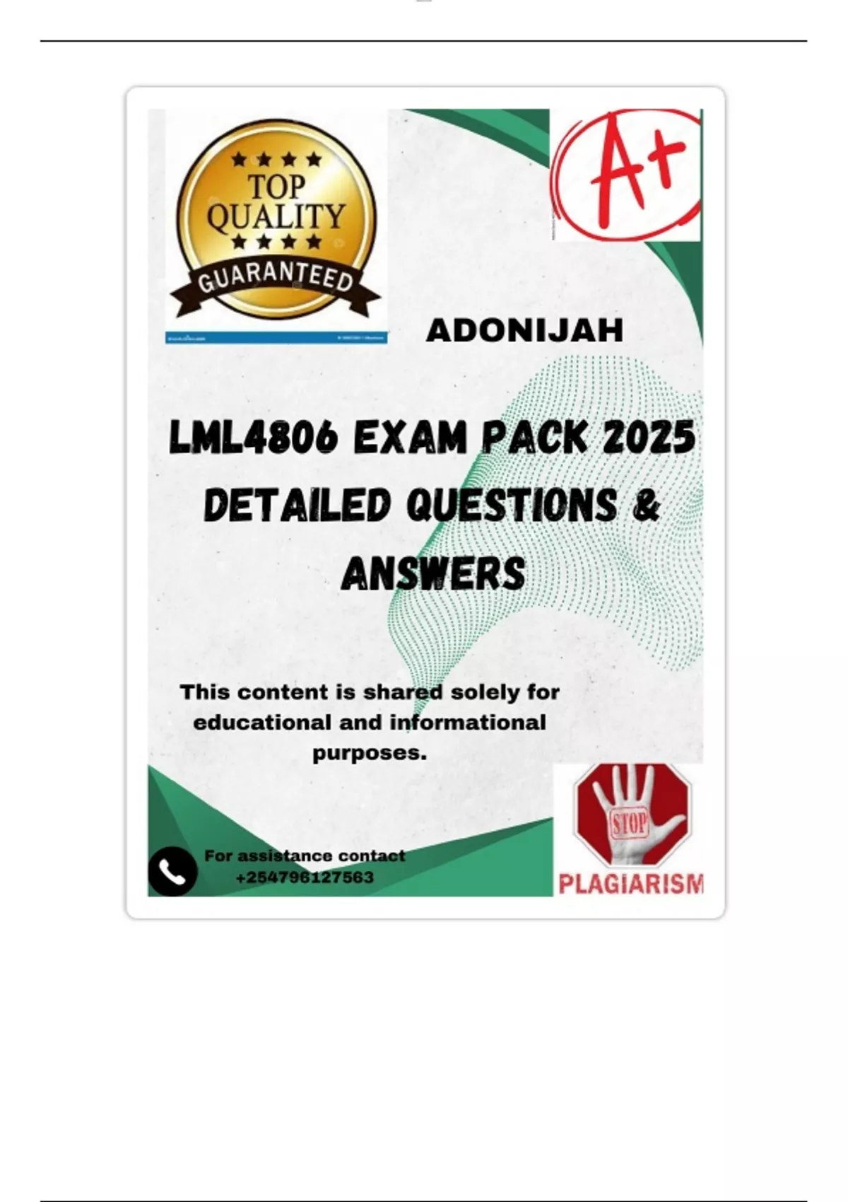 LML4806 EXAM PACK 2025 DETAILED QUESTIONS & ANSWERS