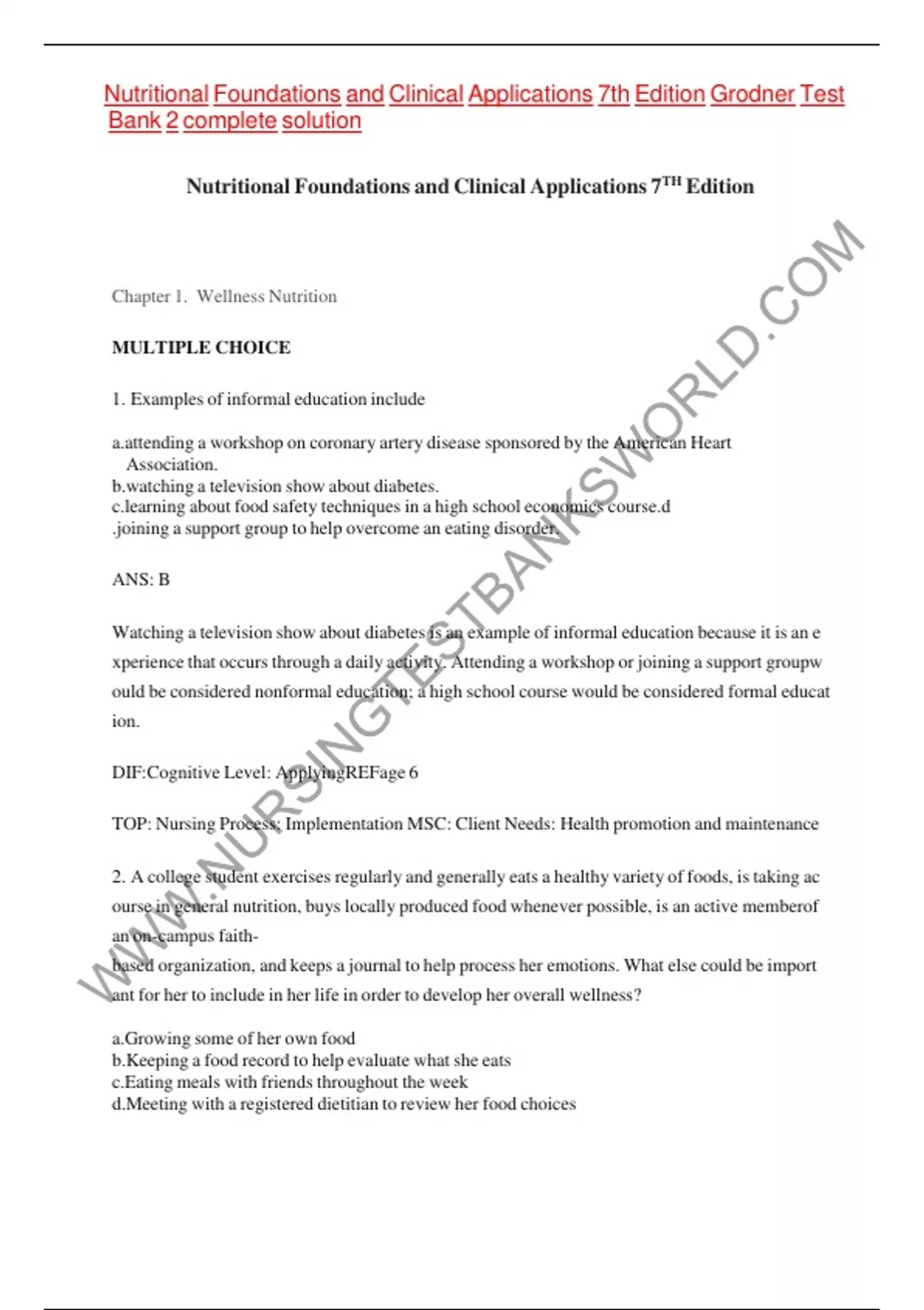 , Nutritional Foundations and Clinical Applications 7th Edition Grodner Test