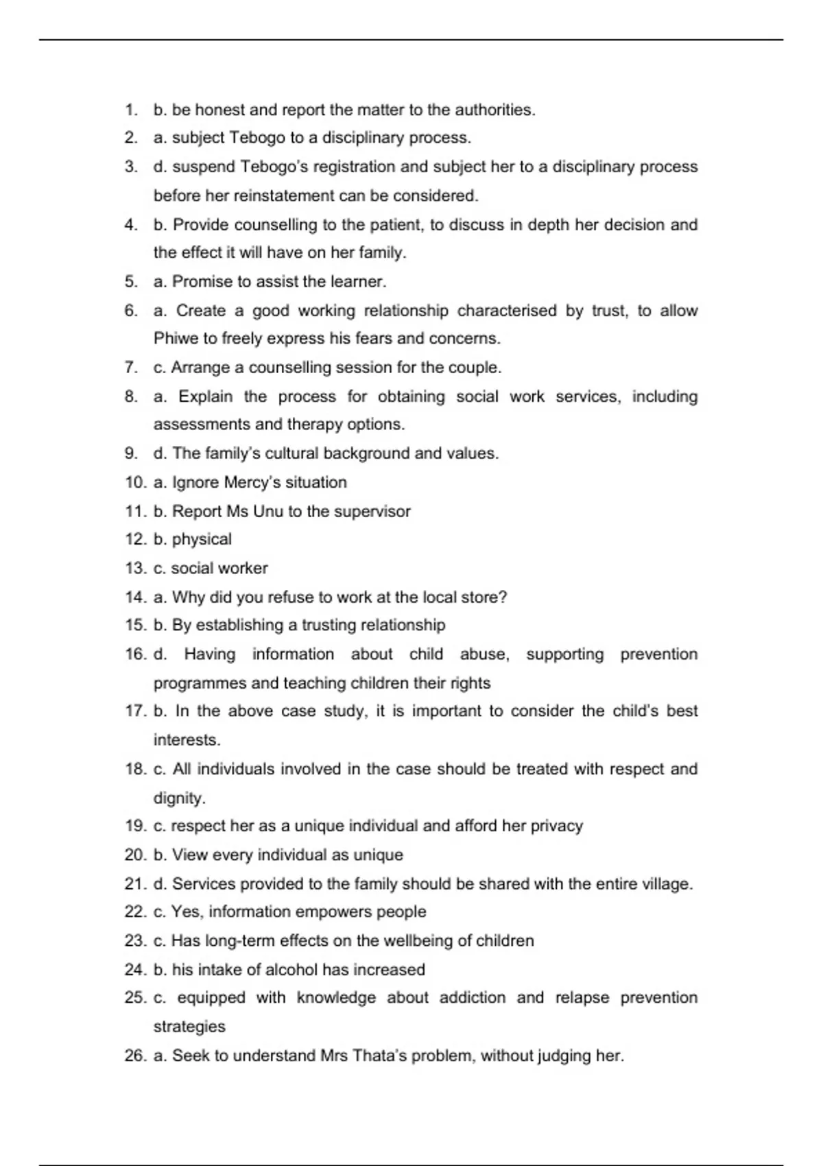 26. a. Seek to understand Mrs Thata’s problem, without judging her.