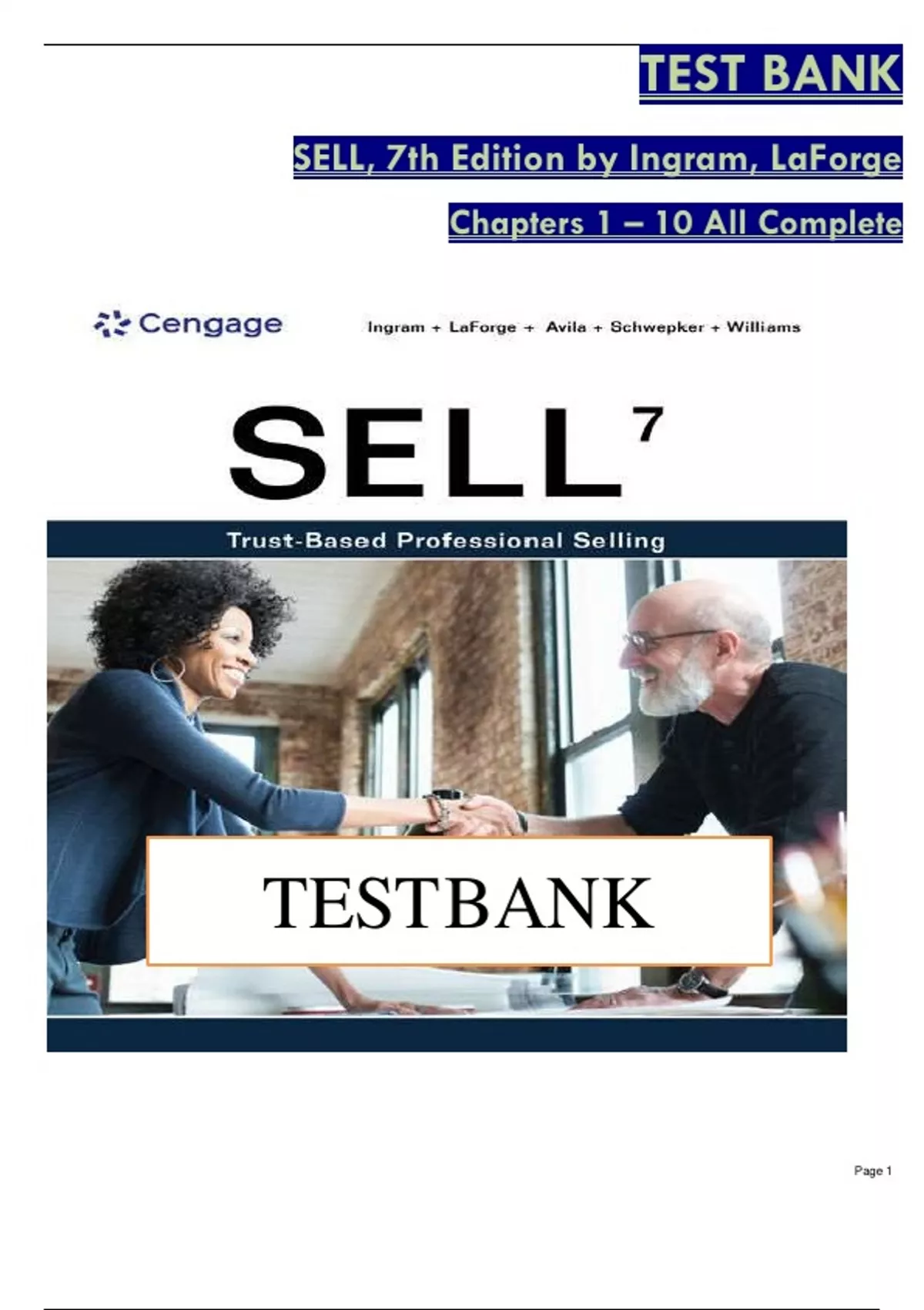 Test Bank for SELL, 7th Edition by Ingram, LaForge, ISBN: 9780357901380, All 10 Chapters Covered, Verified Latest Edition