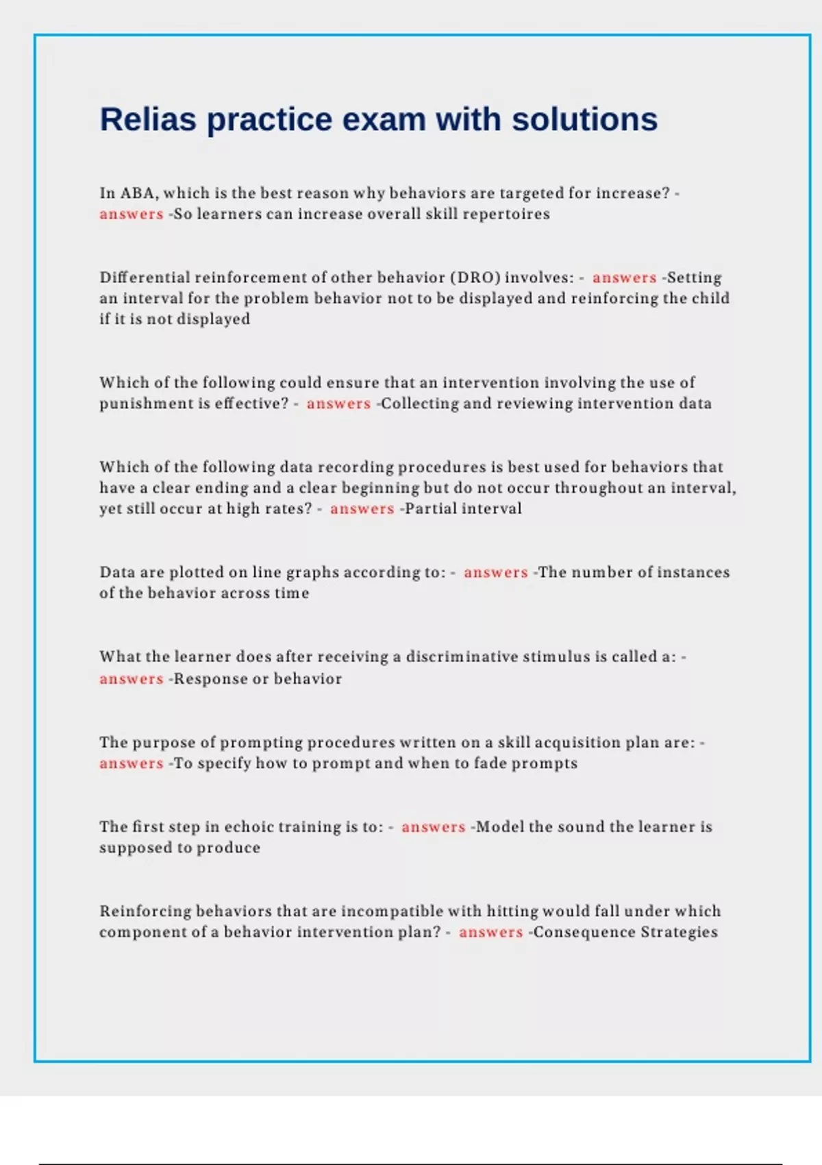 Diff er ential r einfor cem ent of other behavior (DRO) in volves: - an sw er s -Settin g