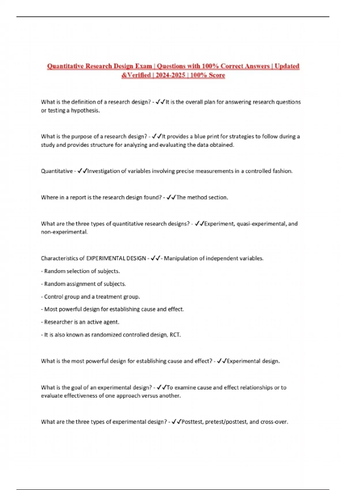 Quantitative Research Design Exam | Questions with 100% Correct Answers | Updated &Verified | | 100% Score