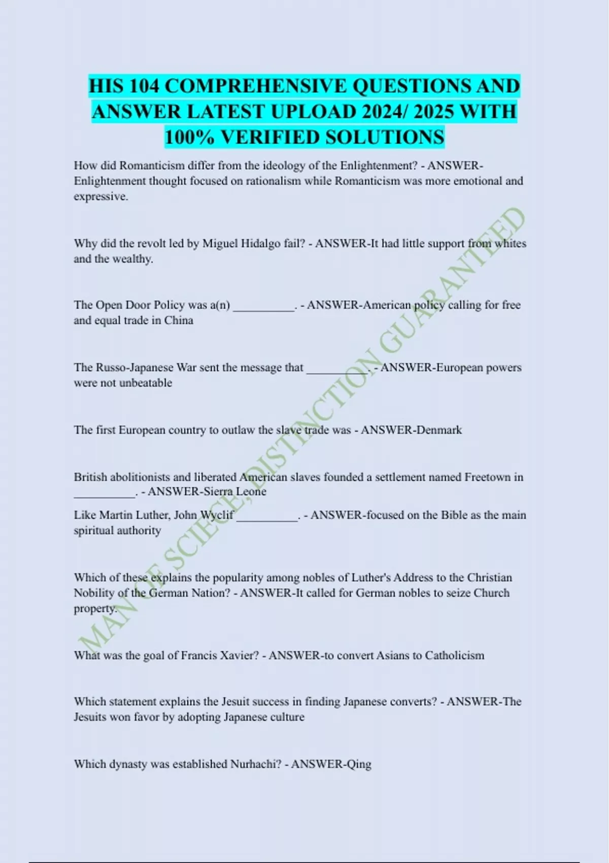 HIS 104 COMPREHENSIVE QUESTIONS AND