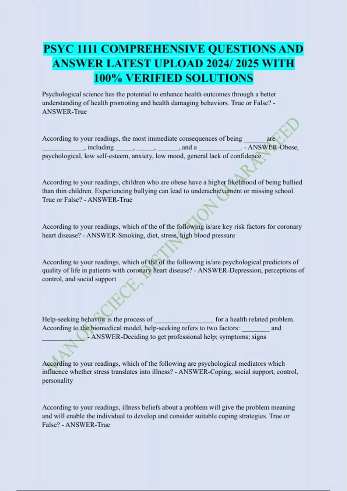 PSYC 1111 COMPREHENSIVE QUESTIONS AND