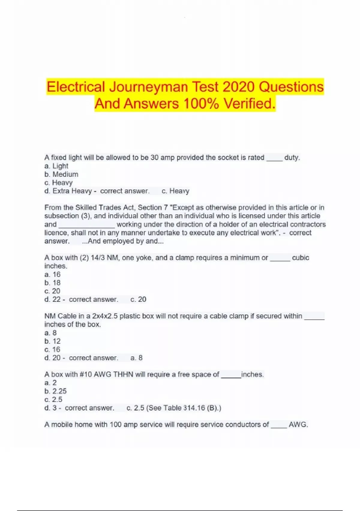 Electrical Journeyman Test 2020 Questions And Answers 100% Verified.Electrical Journeyman Test 2020 Questions And Answers 100% Verified.Electrical Journeyman Test 2020 Questions And Answers 100% Verified.Electrical Journeyman Test 2020 Questions And Answers 100% Verified.Electrical Journeyman Test 2020 Questions And Answers 100% Verified.