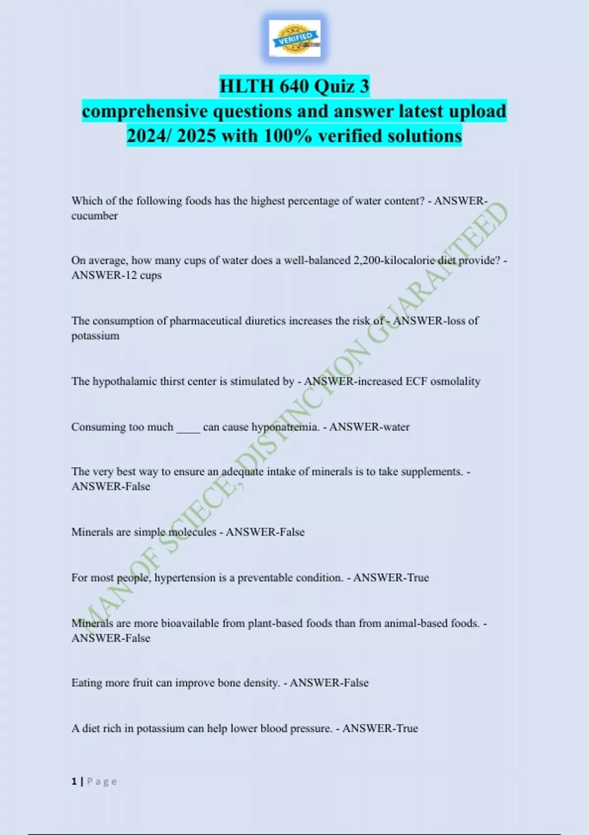 HLTH 640 Quiz 3 comprehensive questions and answer latest upload 2024/ 2025 with 100% verified solutions