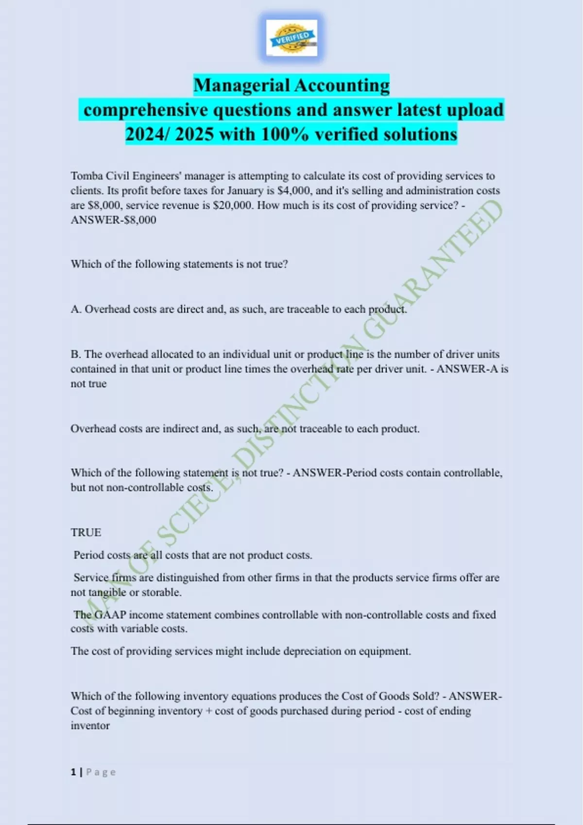 Managerial Accounting comprehensive questions and answer latest upload 2024/ 2025 with 100% verified solutions
