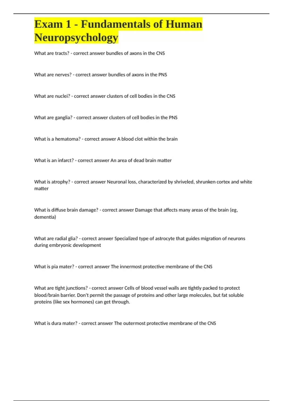 What is diffuse brain damage? - correct answer Damage that affects many areas of the brain (eg,