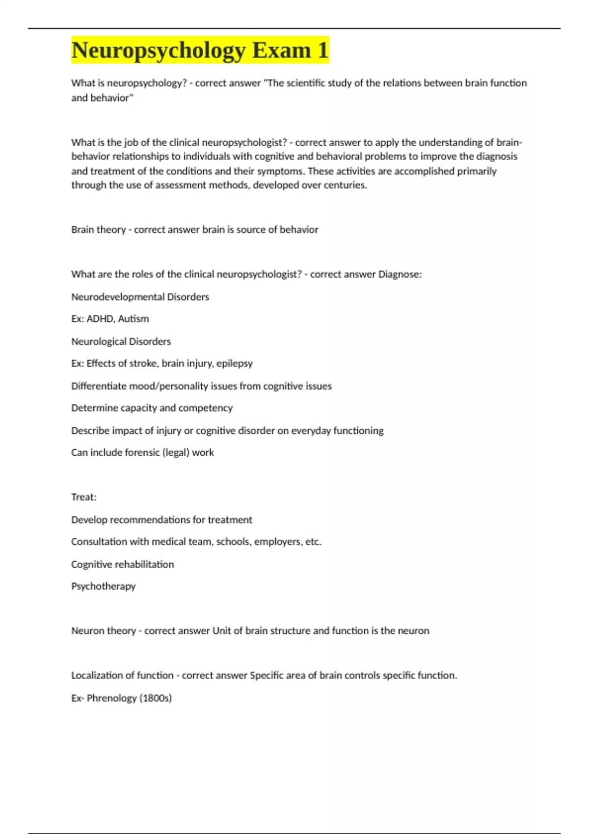 ,Neuropsychology Exam 1