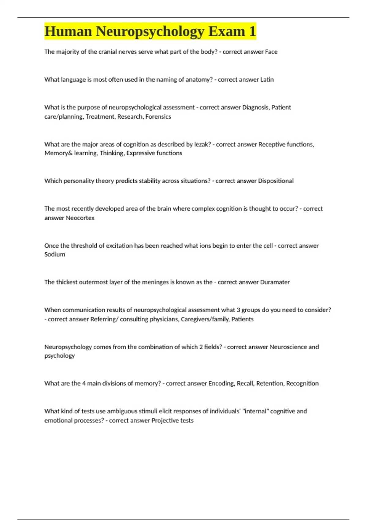 What is the purpose of neuropsychological assessment - correct answer Diagnosis, Patient