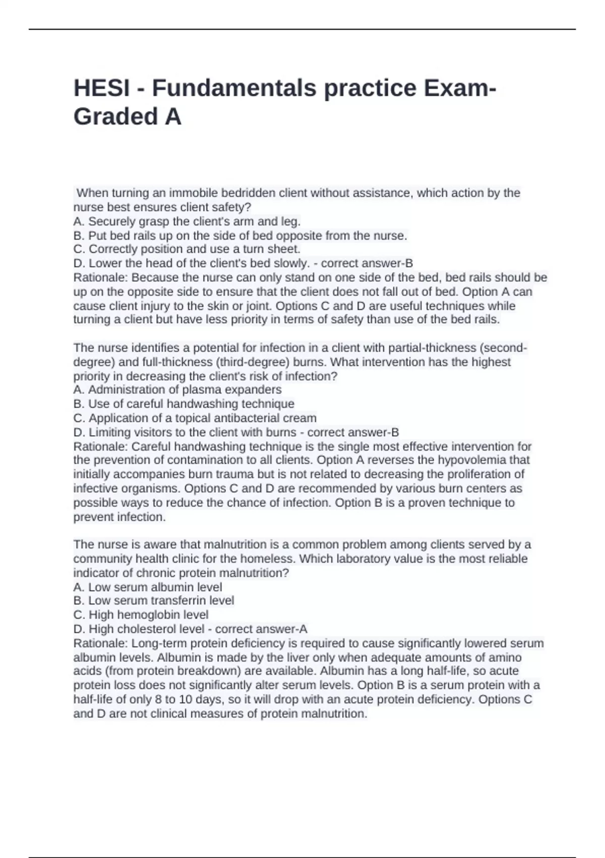 Rationale: Because the nurse can only stand on one side of the bed, bed rails should be
