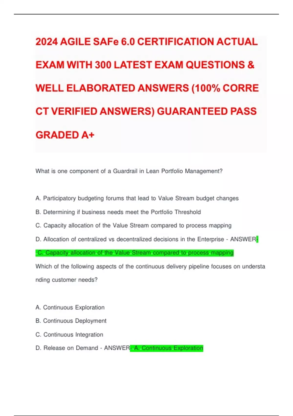 AGILE SAFe 6.0 CERTIFICATION ACTUAL EXAM – 300 Latest Questions & Verified Answers – Guaranteed Pass, A+ Graded