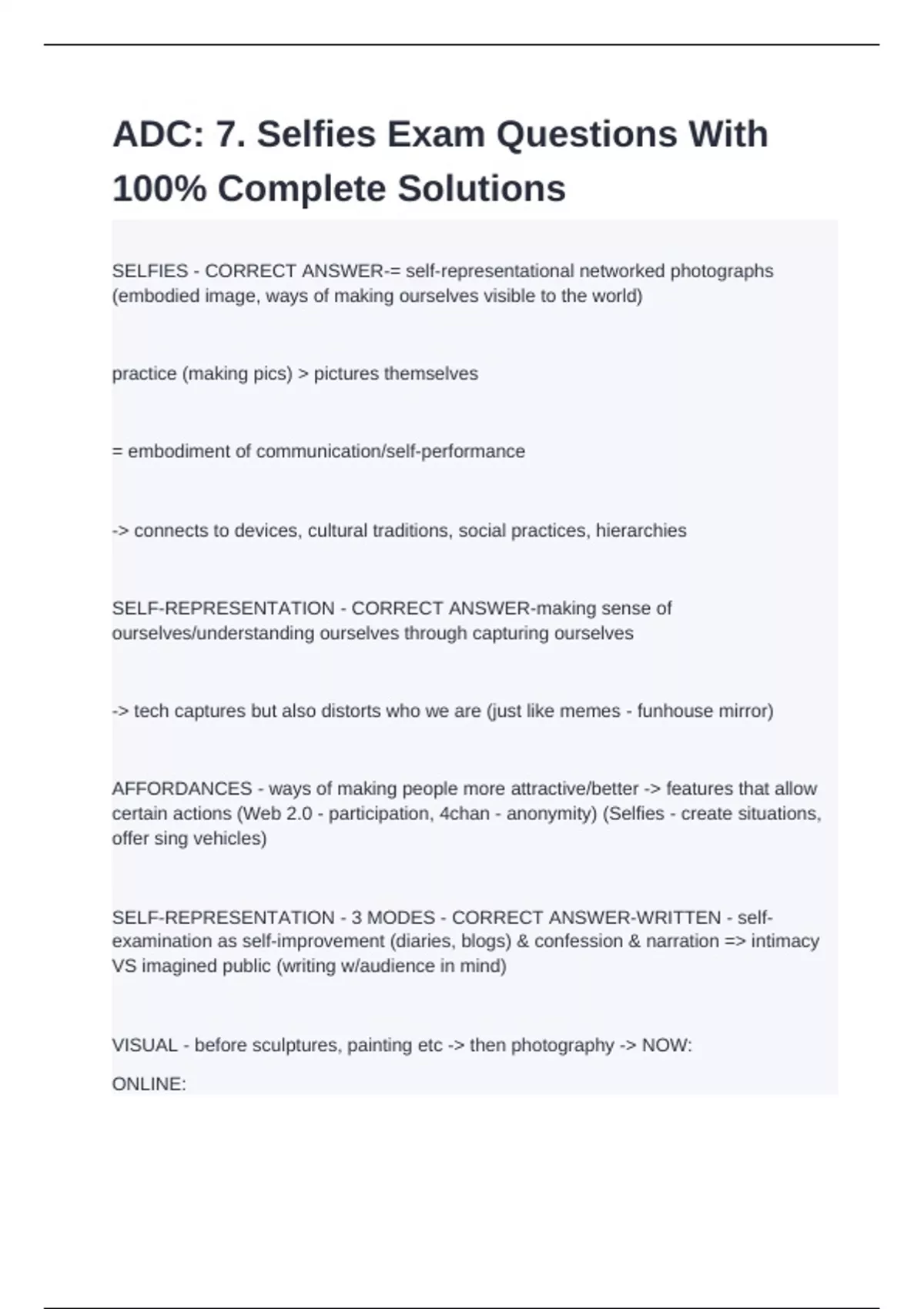 SELFIES - CORRECT ANSWER-= self-representational networked photographs