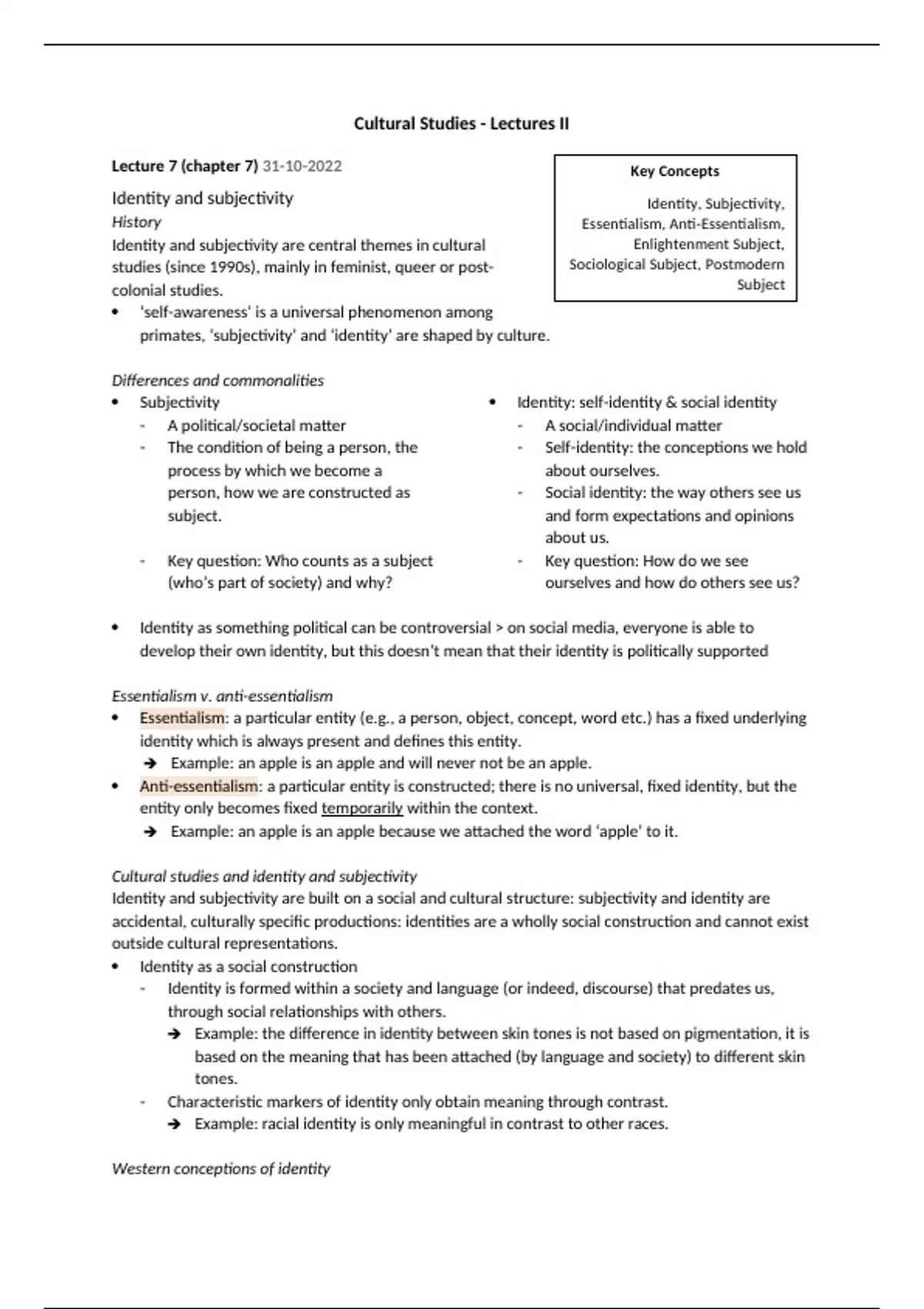 Identity and subjectivity Identity, Subjectivity,