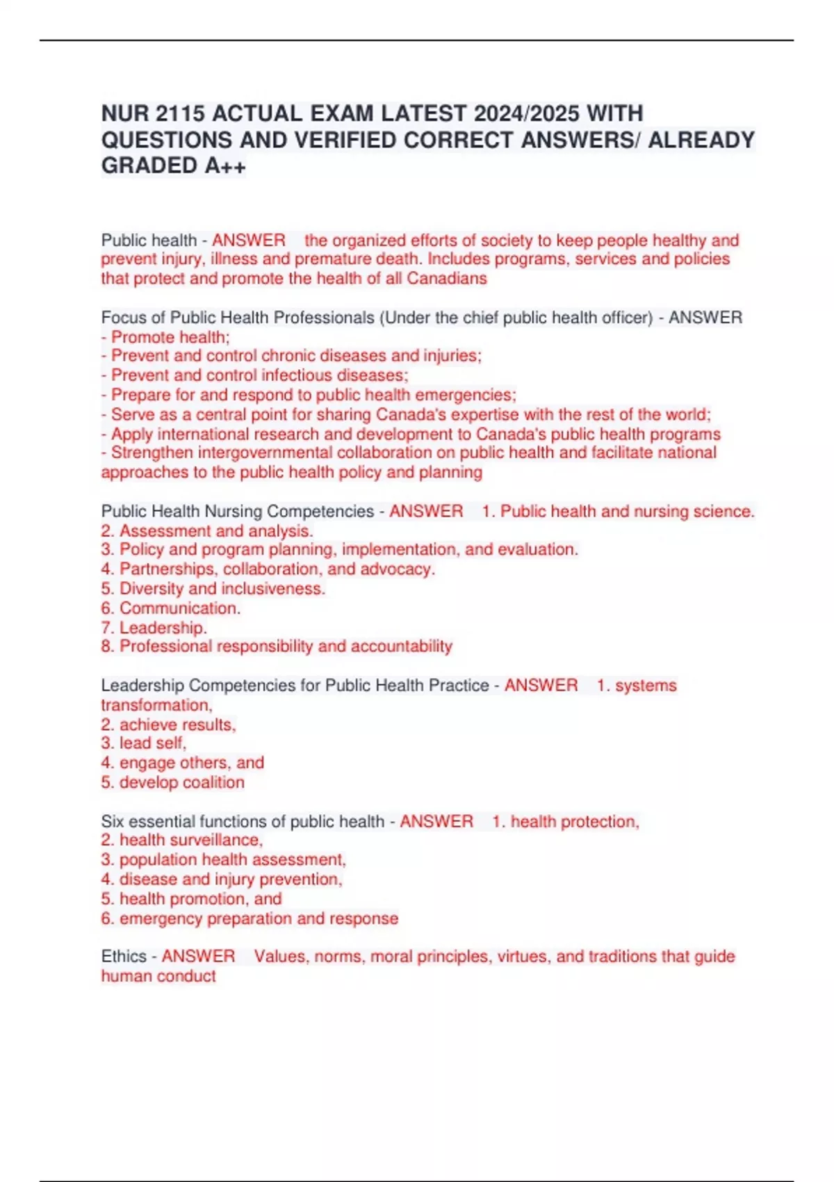 Public Health Nursing Competencies - ANSWER 1. Public health and nursing science.