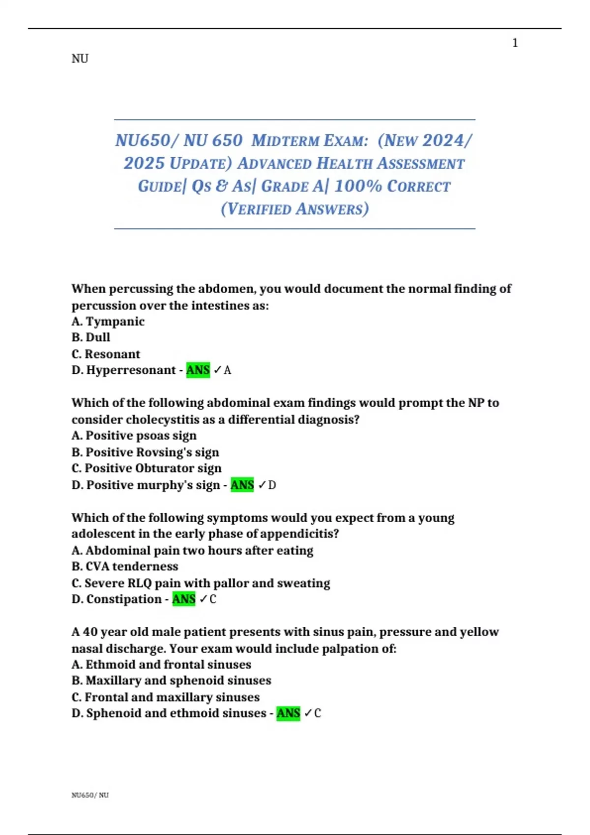 NU650/ NU 650 M IDTERM EXAM: (NEW 2024/