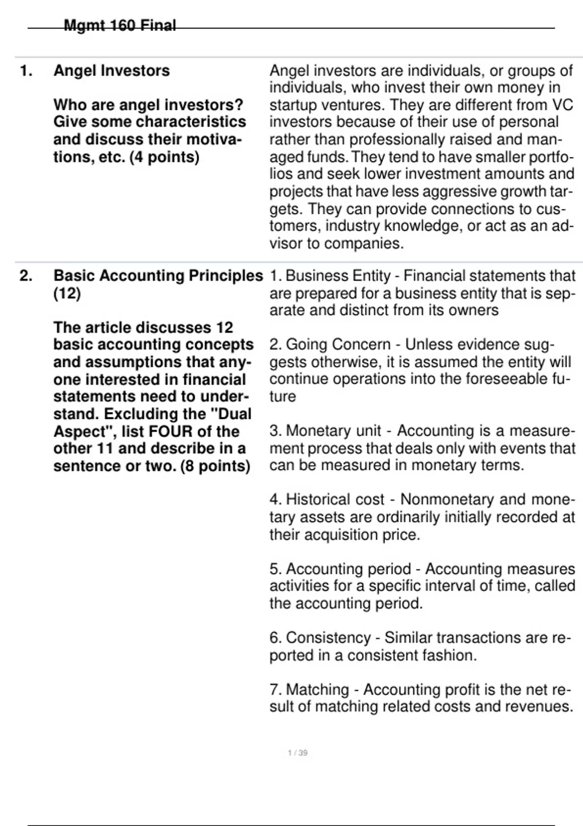 stakeholders. (6 points) proach, financial plan, team, and operating