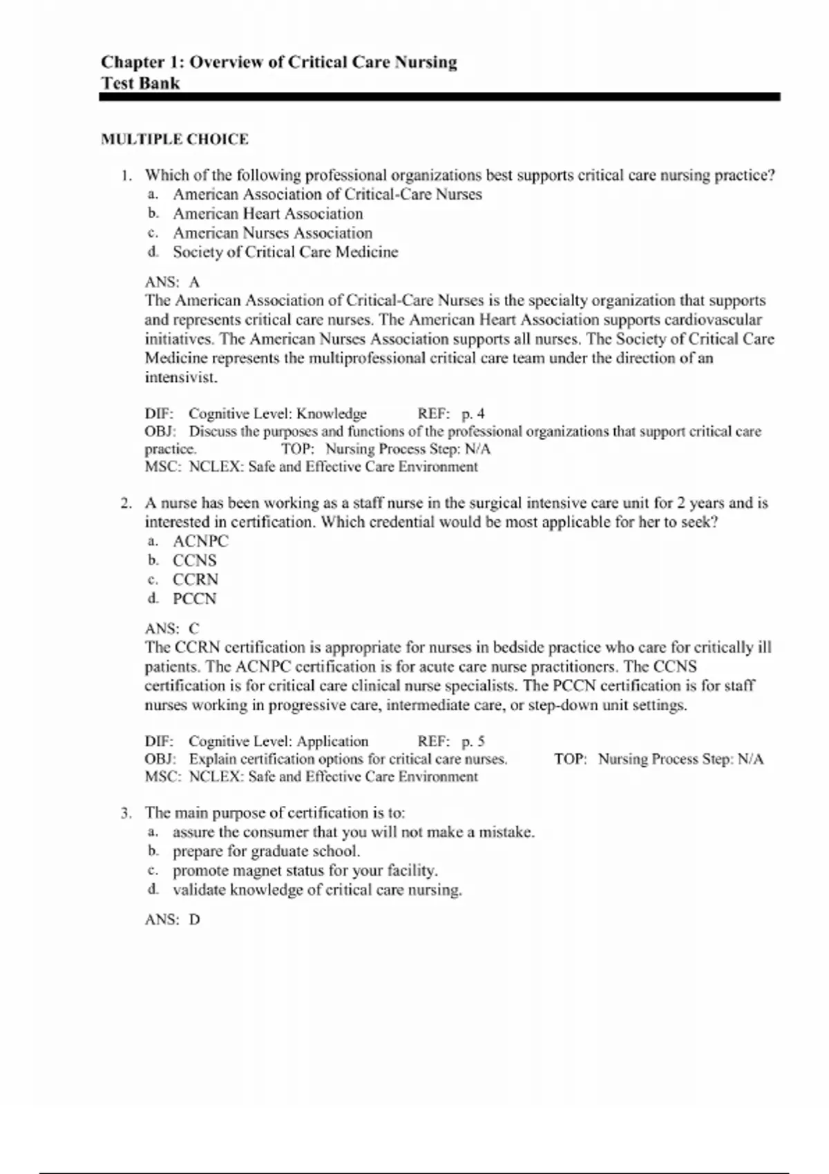 Test Bank For Introduction to Critical Care Nursing 8th Edition by Mary Lou Sole