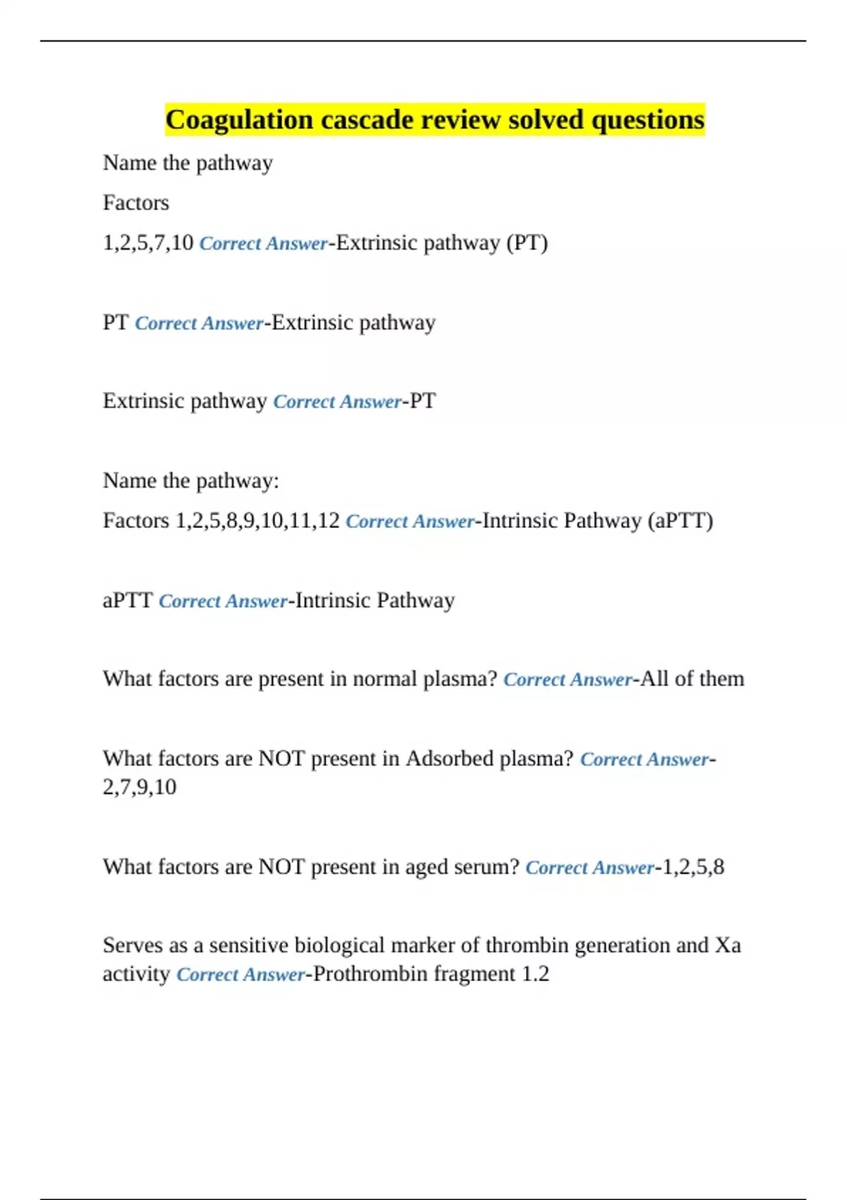 1,2,5,7,10 Correct Answer-Extrinsic pathway (PT)