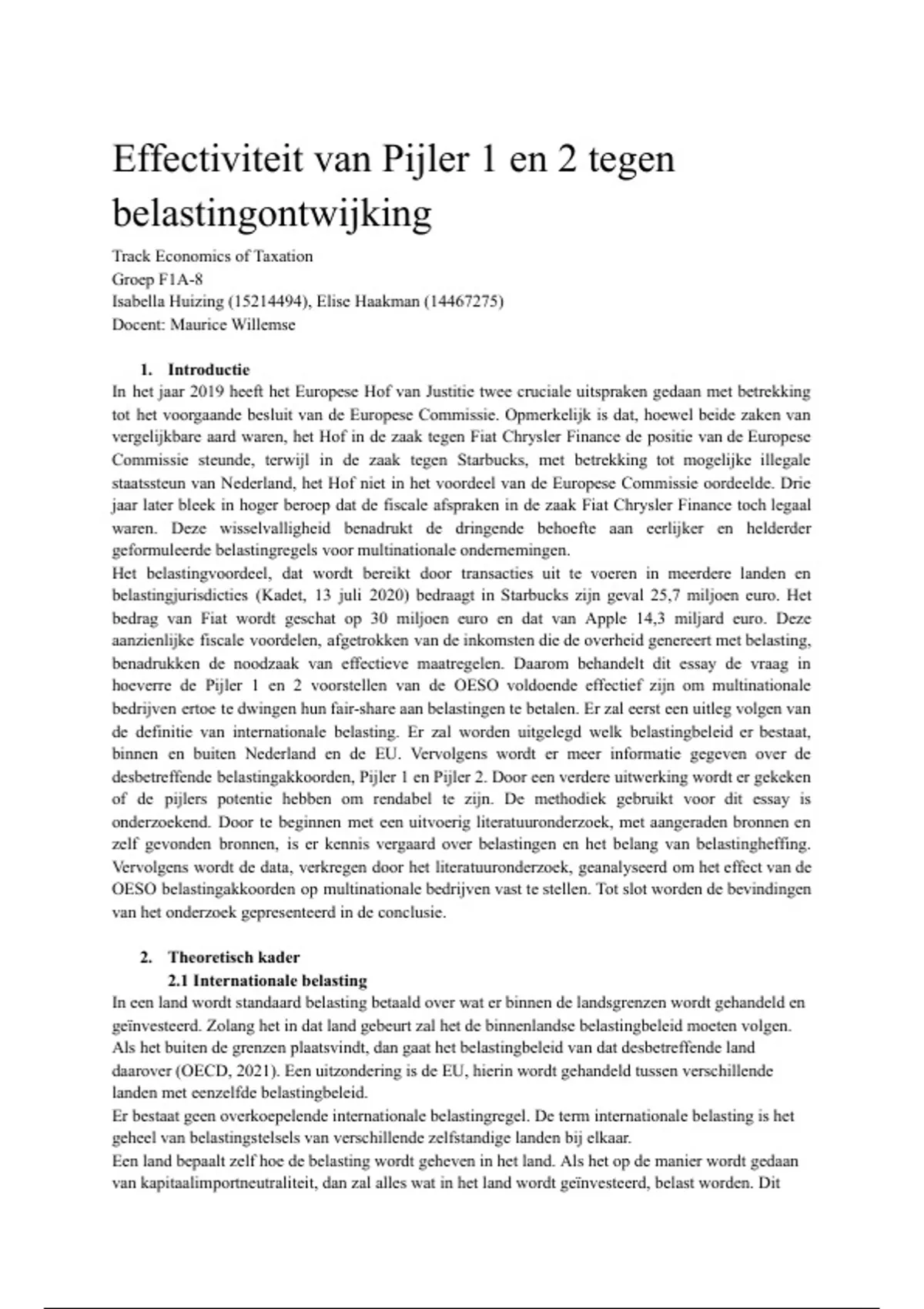 desbetreffende belastingakkoorden, Pijler 1 en Pijler 2. Door een verdere uitwerking wordt er gekeken