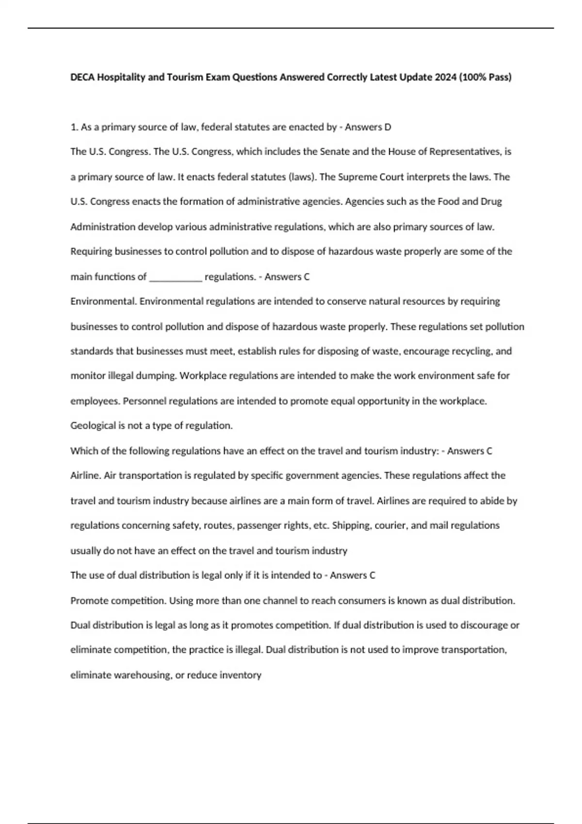 Which of the following regulations have an effect on the travel and tourism industry: - Answers C
