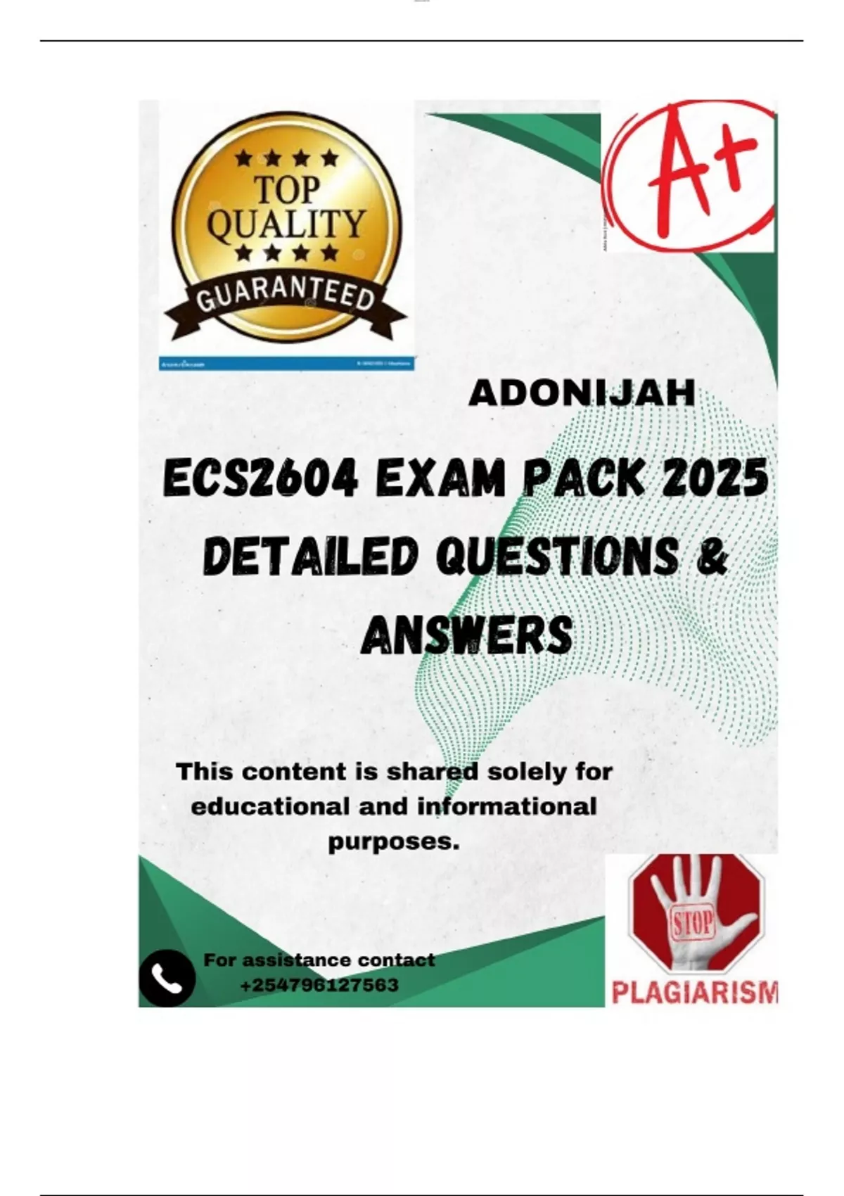 (2) Start with a cover page stating the module code, ECS2604, and your student number.