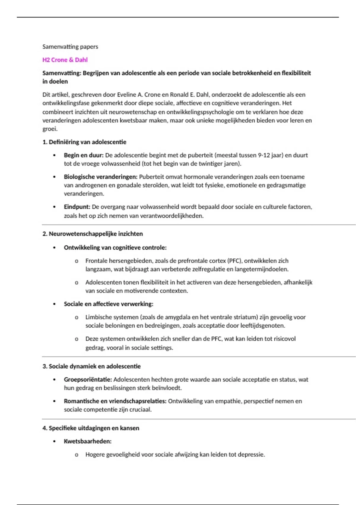 Samenvatting: Begrijpen van adolescentie als een periode van sociale betrokkenheid en flexibiliteit