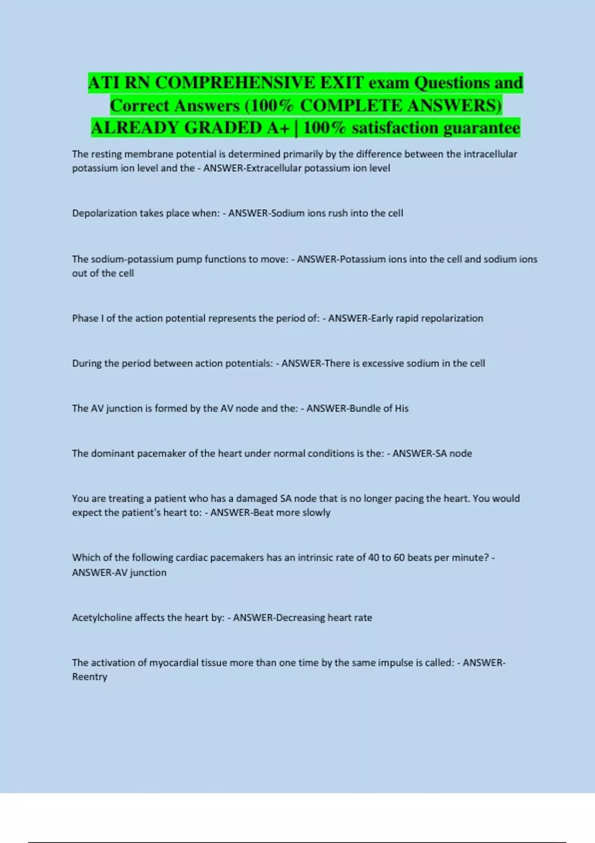 ATI RN COMPREHENSIVE EXIT exam Questions and Correct Answers (100% COMPLETE ANSWERS) ALREADY GRADED A+ | 100% satisfaction guarantee