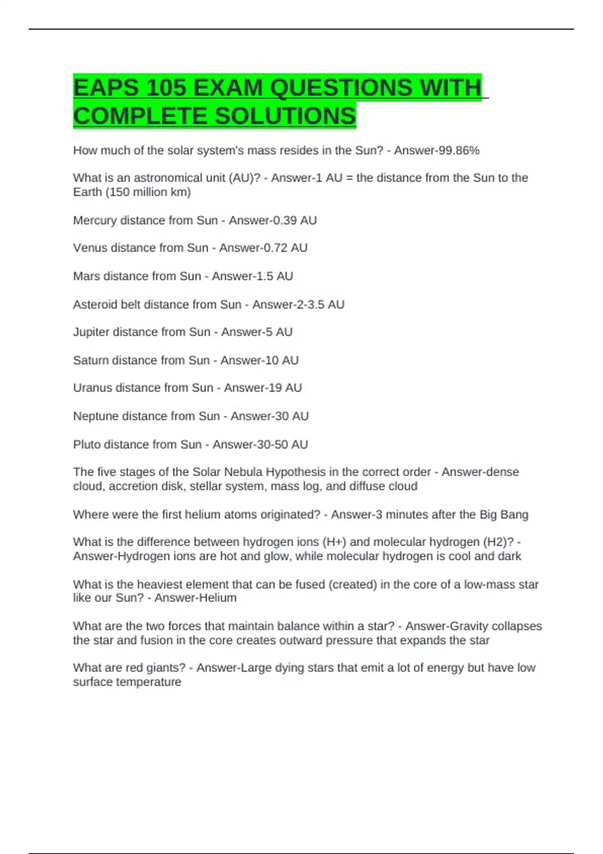 EAPS 105 EXAM QUESTIONS WITH