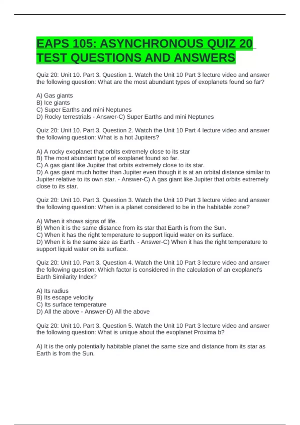 EAPS 105: ASYNCHRONOUS QUIZ 20