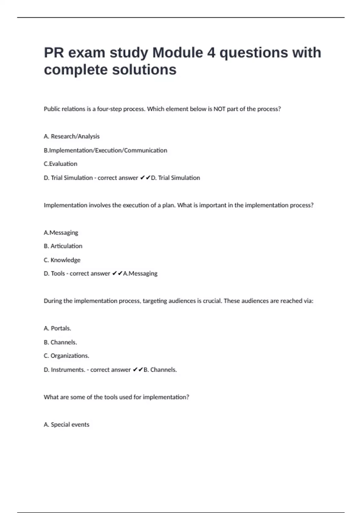 PR exam study Module 4 questions with complete solutions