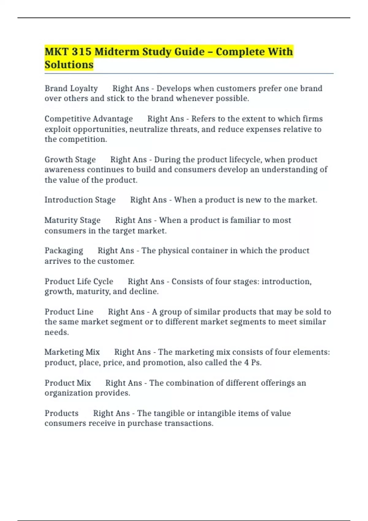 Product Life Cycle Right Ans - Consists of four stages: introduction,