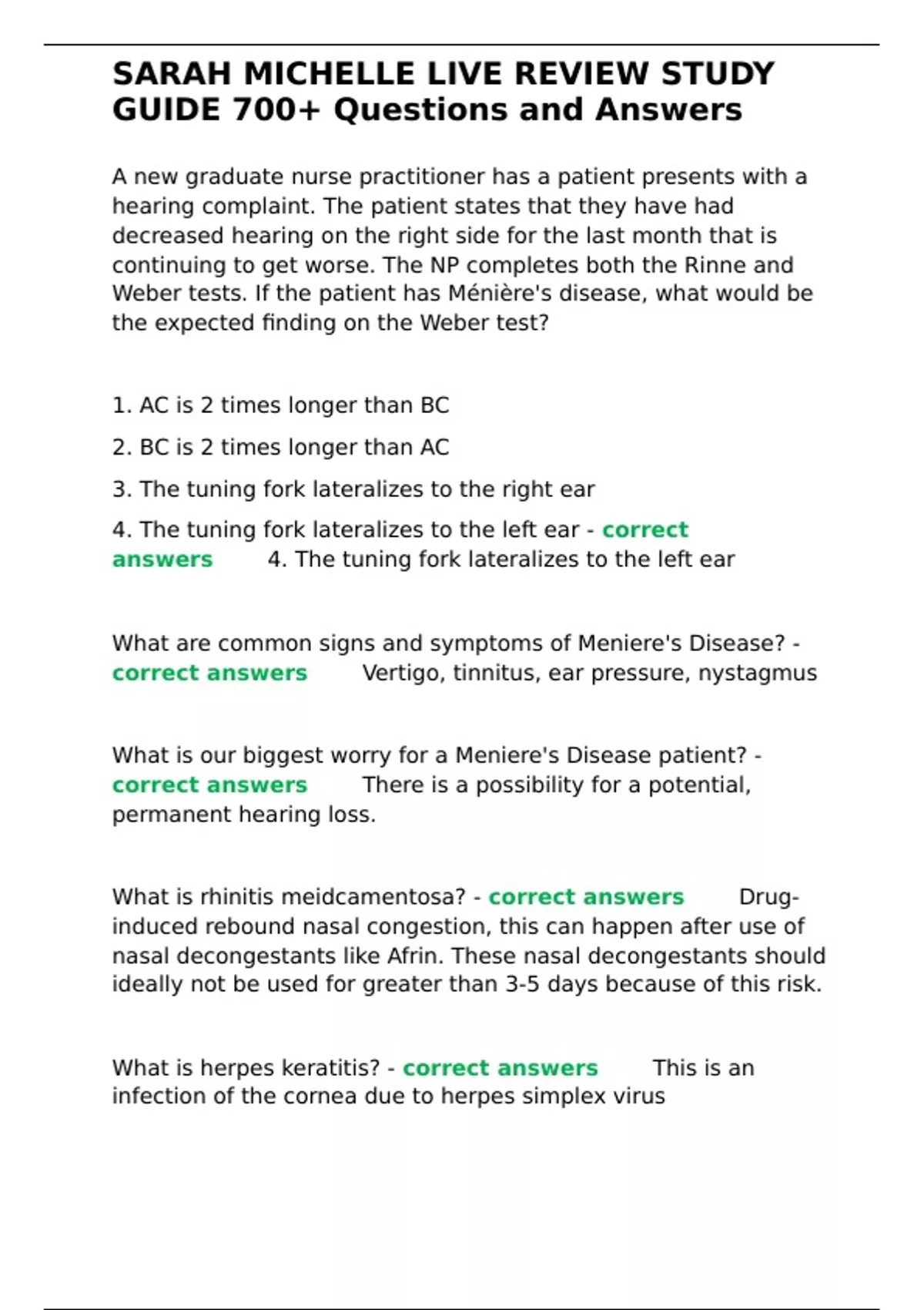 SARAH MICHELLE LIVE REVIEW STUDY GUIDE 700+ Questions and Answers