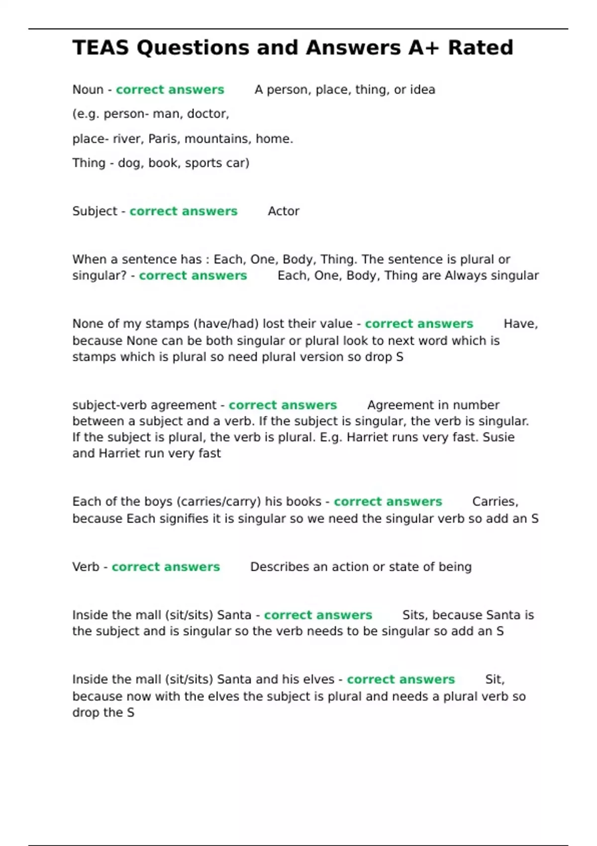 , TEAS Questions and Answers A+ Rated