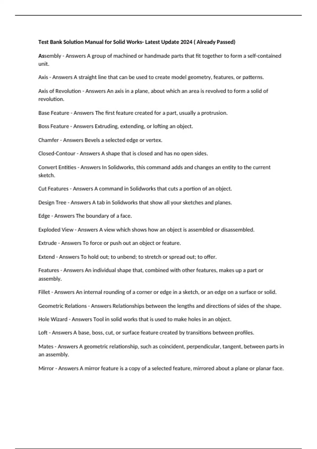 Base Feature - Answers The first feature created for a part, usually a protrusion.