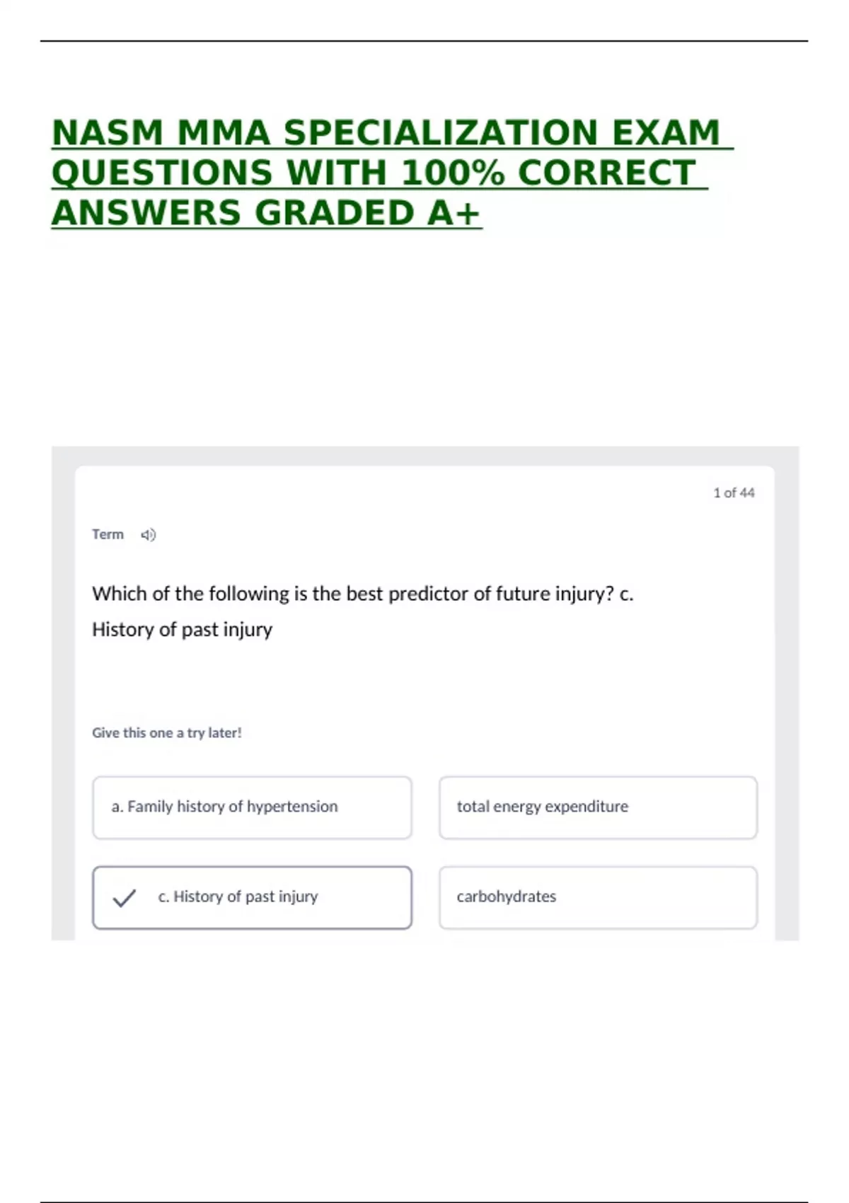NASM MMA SPECIALIZATION EXAM QUESTIONS WITH 100% CORRECT ANSWERS GRADED A+
