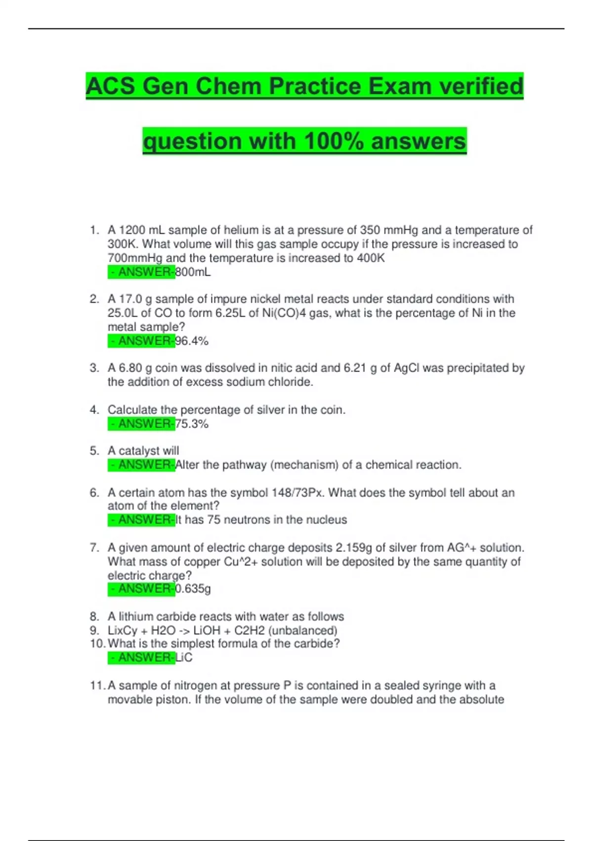 1. A 1200 mL sample of helium is at a pressure of 350 mmHg and a temperature of