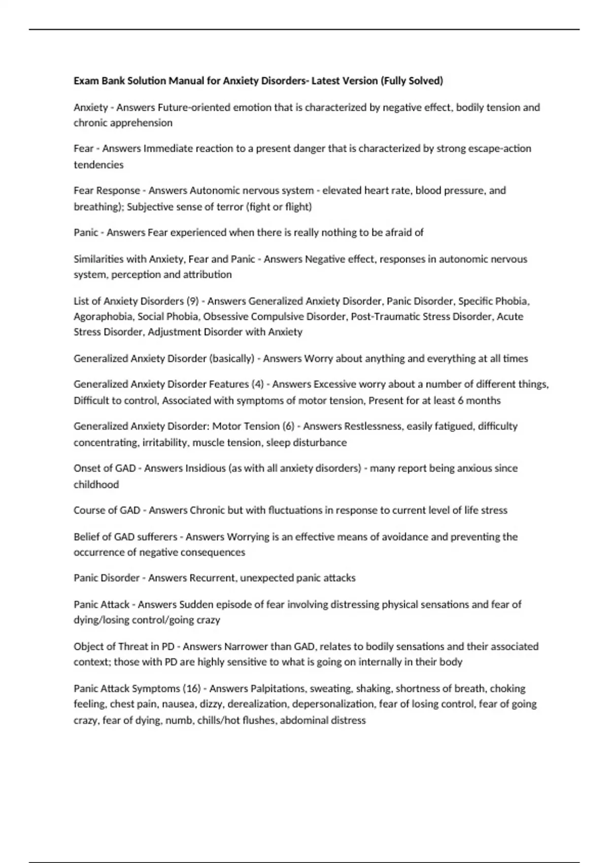 List of Anxiety Disorders (9) - Answers Generalized Anxiety Disorder, Panic Disorder, Specific Phobia,
