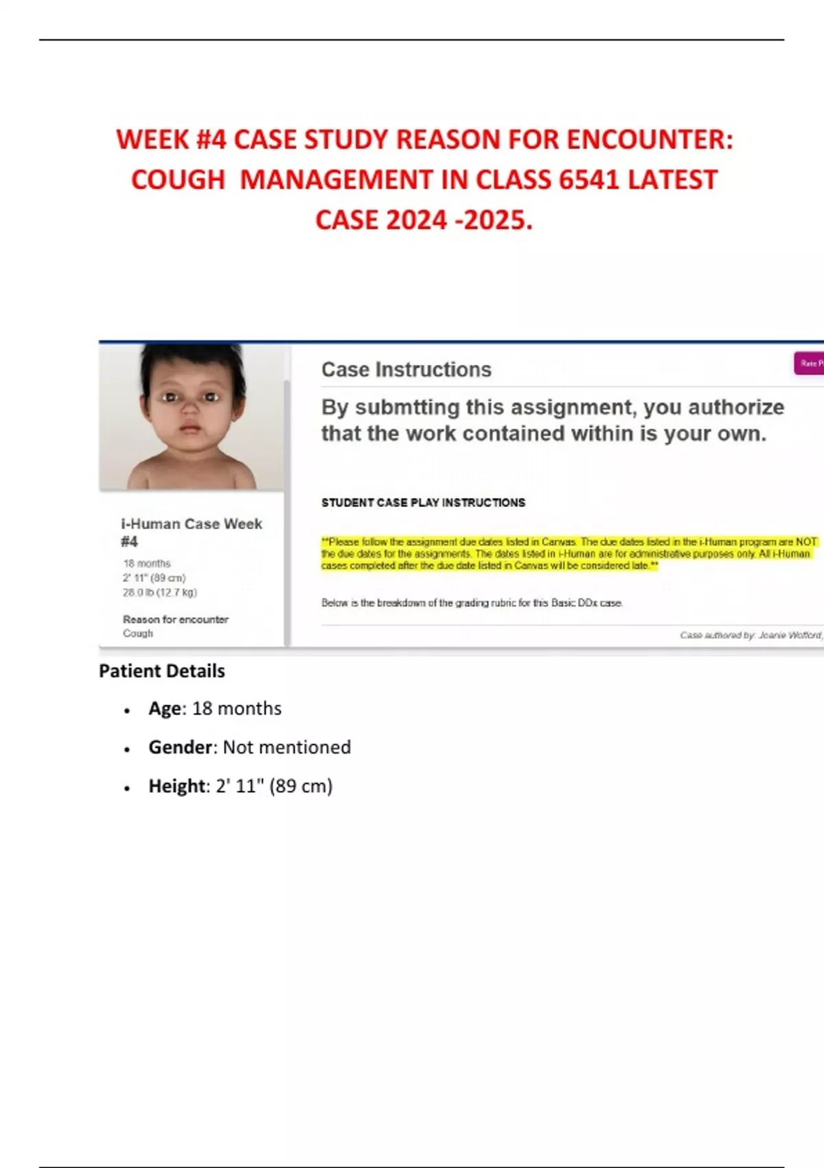 WEEK #4 CASE STUDY REASON FOR ENCOUNTER: COUGH MANAGEMENT IN CLASS 6541 LATEST CASE .