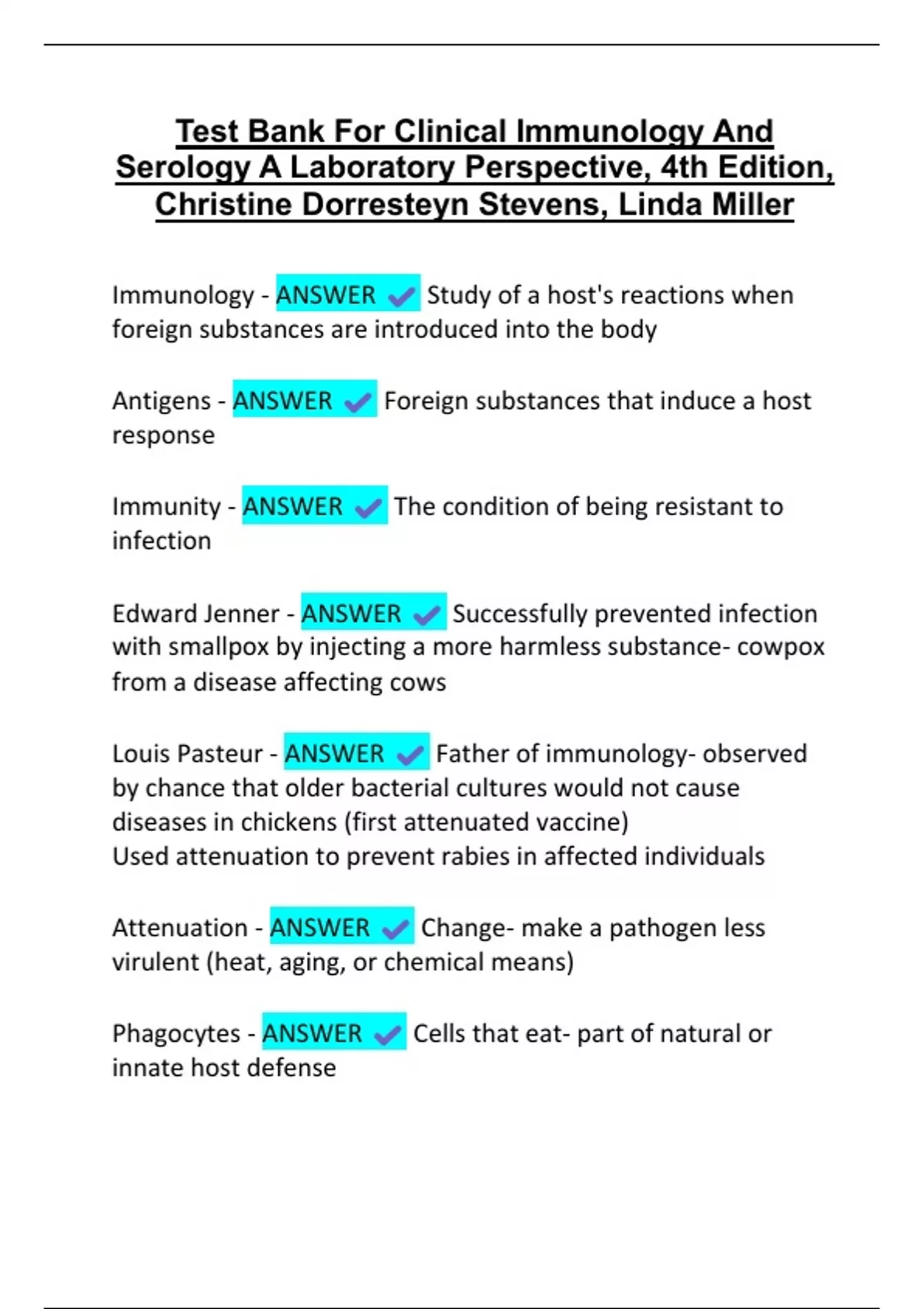 Eosinophil granules - ANSWER Catalase, lysozyme,