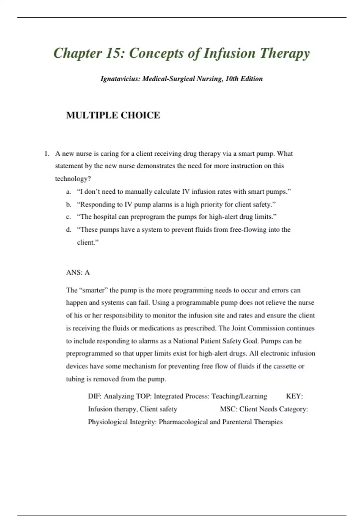 Infusion therapy, Client safety MSC: Client Needs Category: