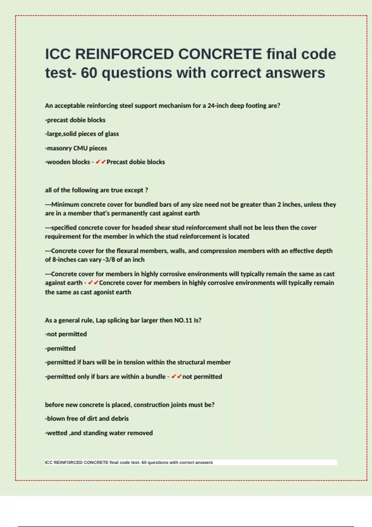 ICC REINFORCED CONCRETE final code test- 60 questions with correct answers