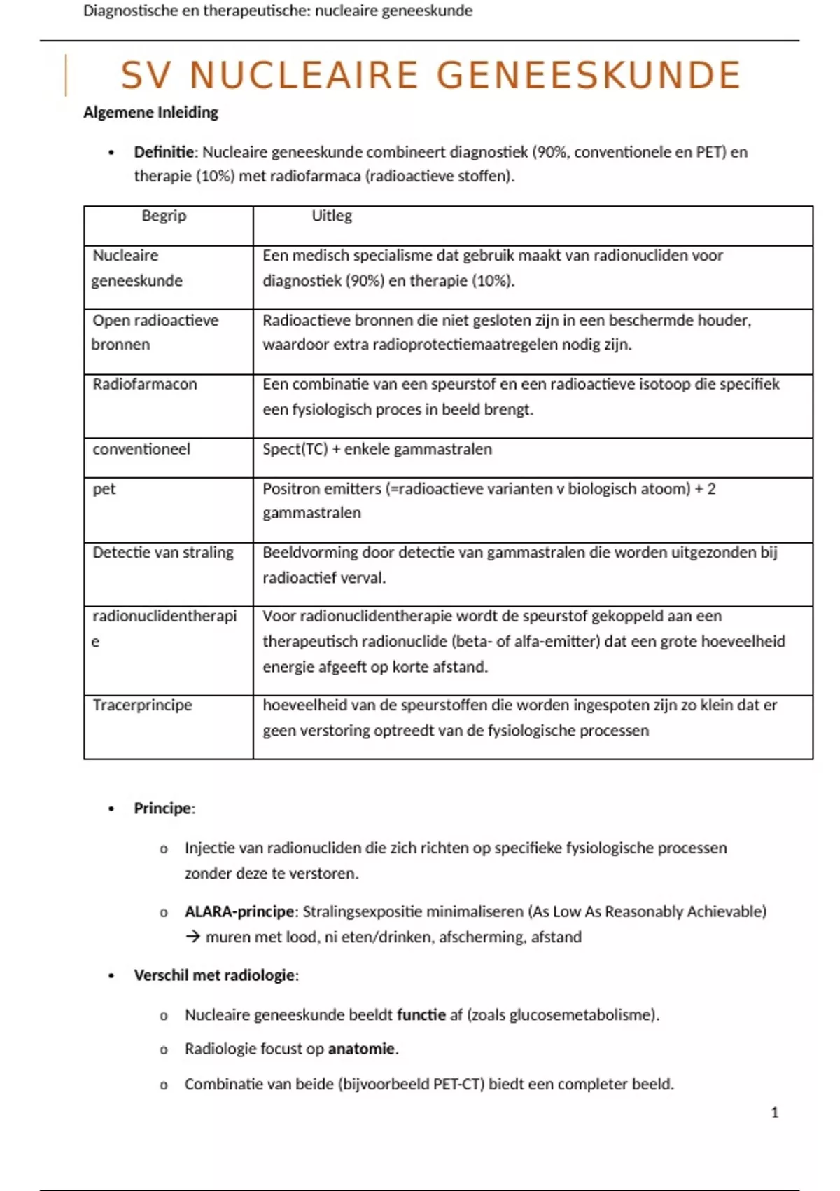 Definitie: Nucleaire geneeskunde combineert diagnostiek (90%, conventionele en PET) en