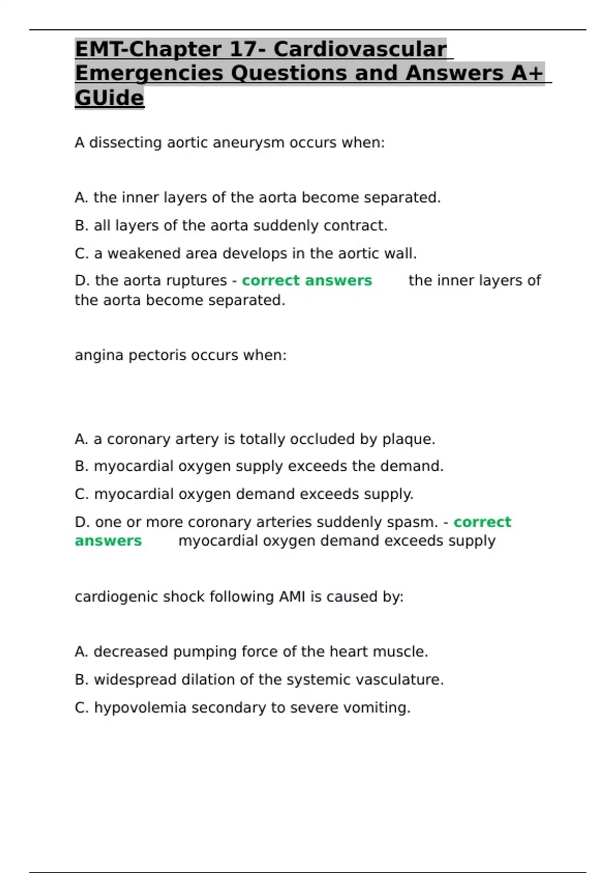 , EMT-Chapter 17- Cardiovascular