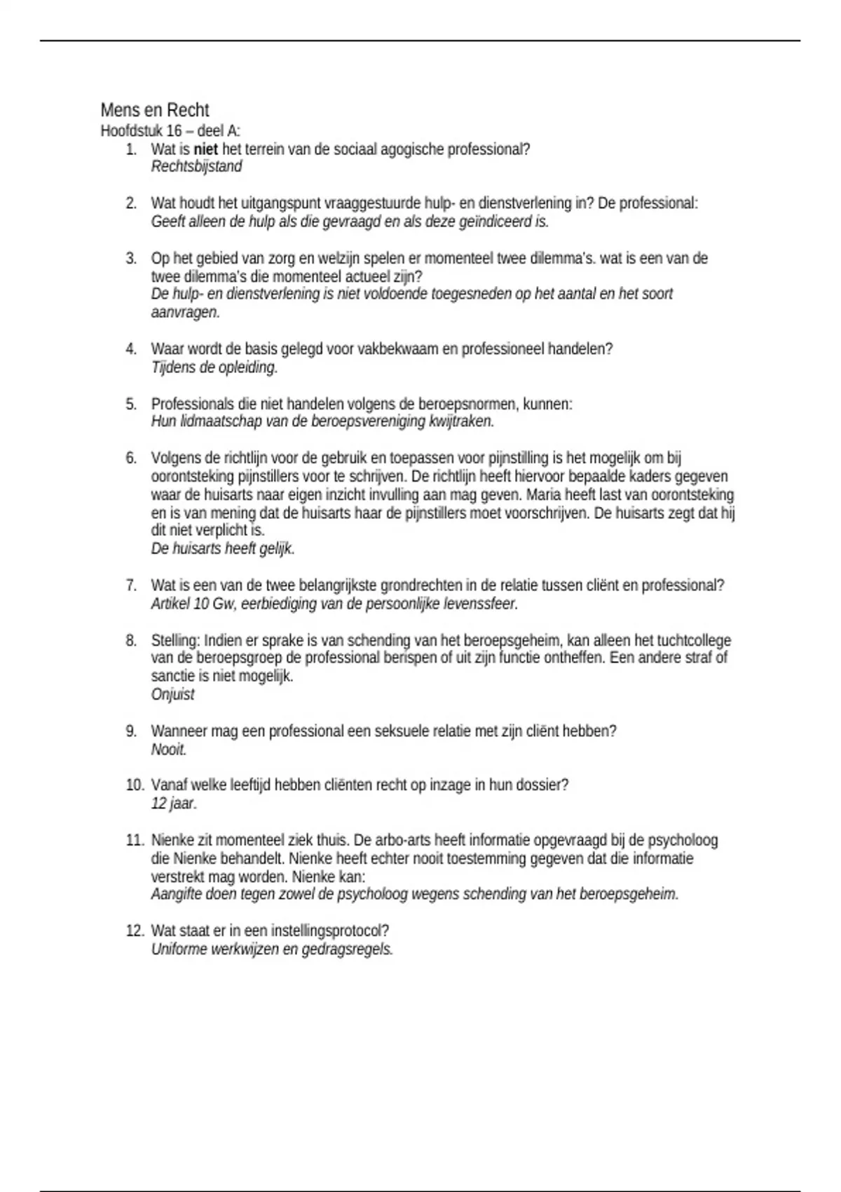 11. Nienke zit momenteel ziek thuis. De arbo-arts heeft informatie opgevraagd bij de psycholoog