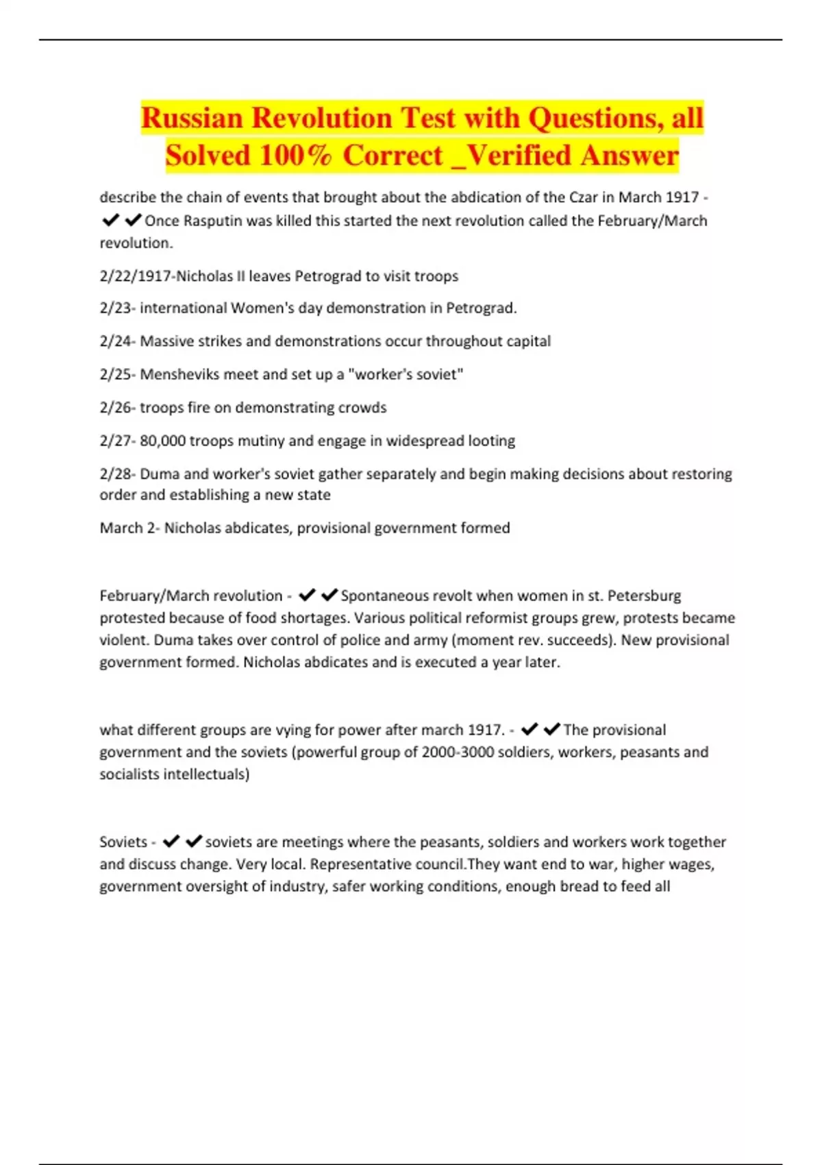 Russian Revolution Test with Questions, all