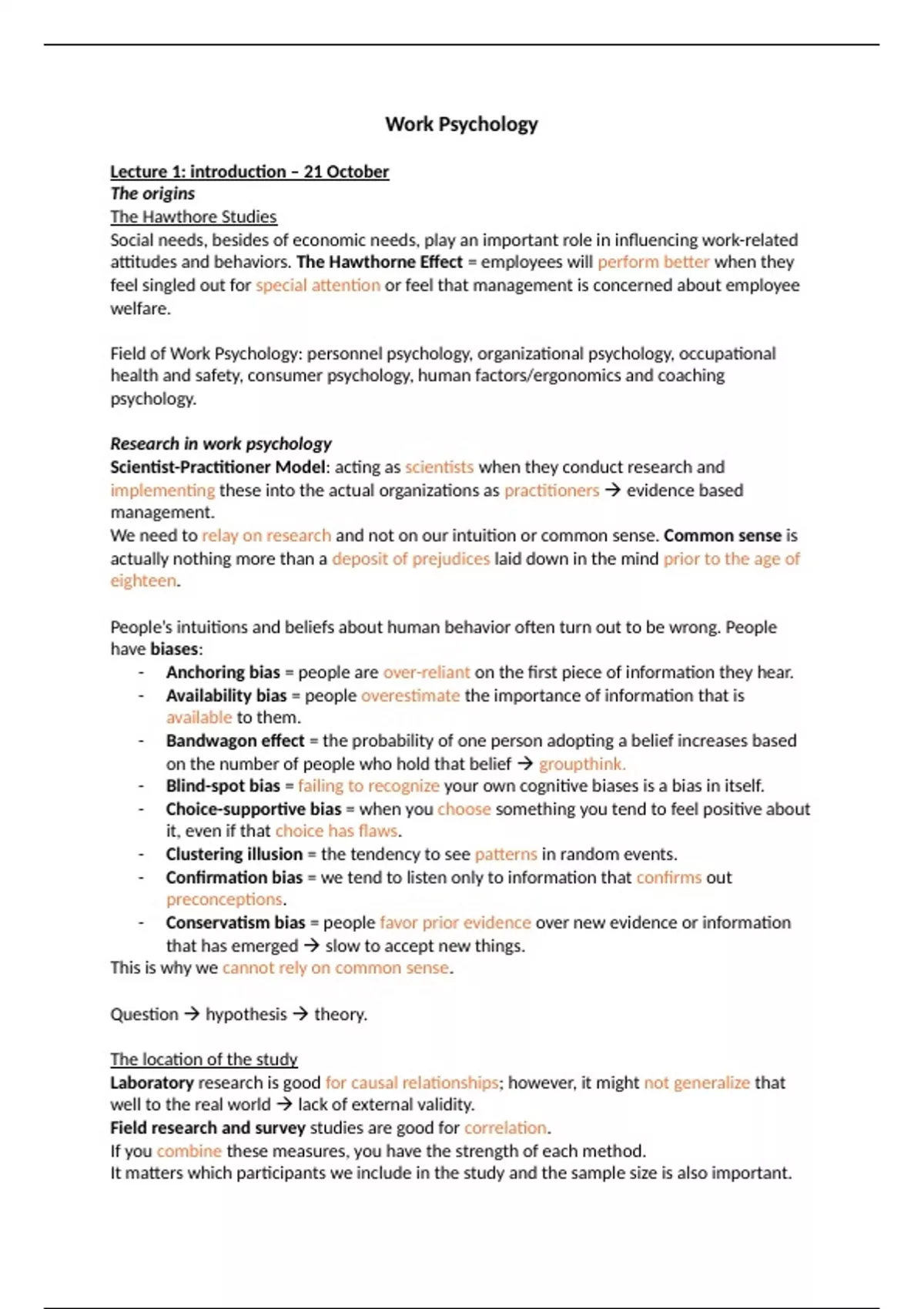 Summary Work Psychology