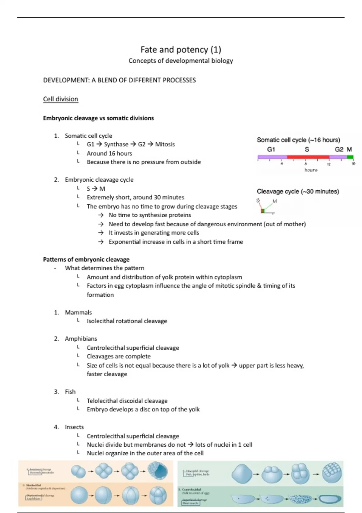 Embryonic cleavage vs somatic divisions