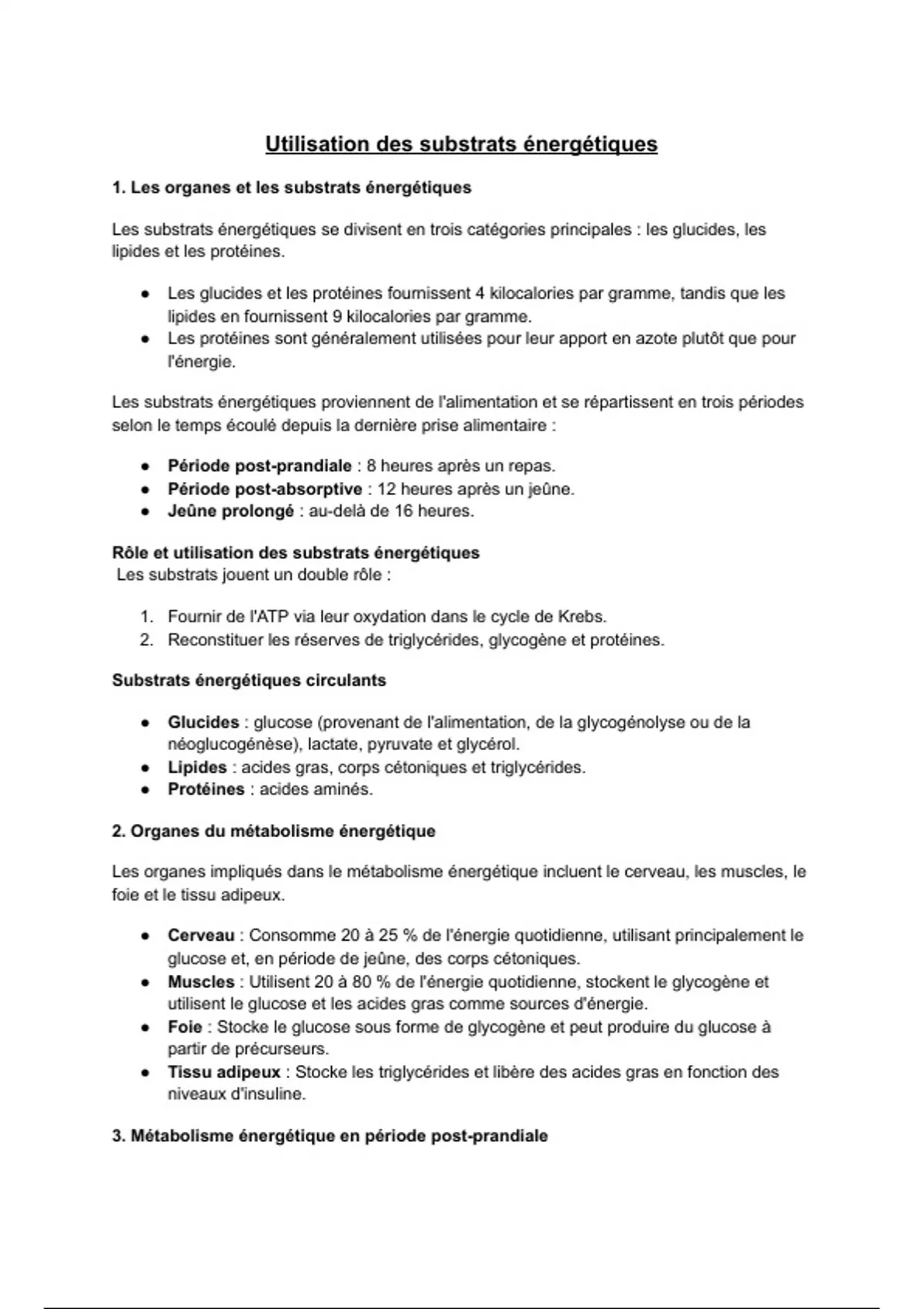 3. Métabolisme énergétique en période post-prandiale