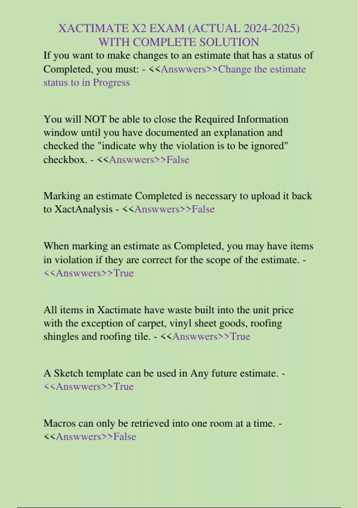, XACTIMATE X2 EXAM (ACTUAL 2024-2025)